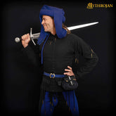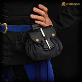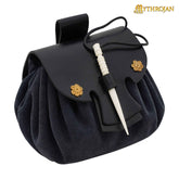 Mythrojan “ Gold and Dice ” Medieval Fantasy Belt Bag with Bone Needle Closure, Ideal for SCA LARP Reenactment & Ren fair, Midnight Navy Blue , 3.5”
