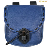 Mythrojan “The Adventurer’s” Belt Bag with Horn Toggle, Ideal for SCA LARP Reenactment & Ren fair, Full Grain Leather, Blue, 8”x 7”