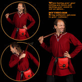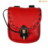 Mythrojan “The Adventurer’s” Belt Bag with Horn Toggle, Ideal for SCA LARP Reenactment & Ren fair, Full Grain Leather, Red, 8”x 7”