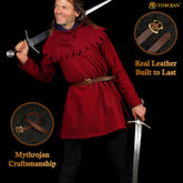 ⭐ VERSATILE & IDEAL FOR MANY CHARACTER TYPES (Historical or Fantasy): Whether you are a brave warrior or a fearless knight, an elegant damsel or a skilled elven ranger, this Mythrojan belt will be the perfect companion for all your adventures. Its solid brass buckle closure is based on the original finds from London dating back to the 14th to 15th centuries. Whatever your favorite universe or character, its authentic look and sturdy and reliable leather will make the difference!