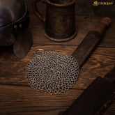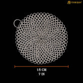 Mythrojan Chainmail Round Stainless Steel Scrubber, Ideal for Cleaning Cast Iron Skillet, Wok, Cooking Pot, Griddle or Cast Iron Cauldron Maintenance, Diameter: 4.7”