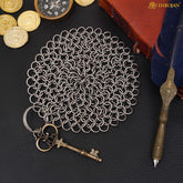 Mythrojan Chainmail Round Stainless Steel Scrubber, Ideal for Cleaning Cast Iron Skillet, Wok, Cooking Pot, Griddle or Cast Iron Cauldron Maintenance, Diameter: 7”