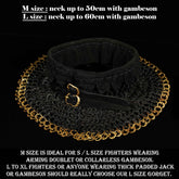 Mythrojan RIVETED CHAINMAIL STANDARD “The Black Knight Gorget”: 9mm Flat Ring Round Rivets (Alt) with black suede padded lining and Solid Brass Edges– SIZE M