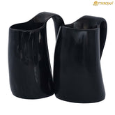 Mythrojan Black Viking Horn Ale Mug, Medieval Knight Renaissance Mead Ale Larp Cosplay Horn Tankard Set of 2