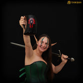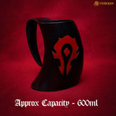 Mythrojan "For the HORDE" horn mug : Mead Ale Horn Tankard for Medieval Knight Renaissance LARP Cosplay BLACK, 600ml