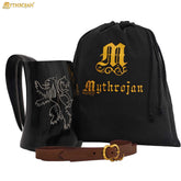 Mythrojan Viking Drinking Tankard with Medieval Buckle Leather Strap Wine Beer Mead Mug 800 ML - Polished Finish