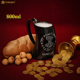 ⭐ PERFECT SIZE ♦♦ 600ml, 800ml, & 1000ml is the ideal size to easily carry during events while still offering enough volume to delight even the thirstiest Viking warrior!⭐ 100% LEAK-FREE & ETHICALLY SOURCED GENUINE HORN ♦♦ Our drinking horn tankards are individually made by hand, highly polished, and sealed to keep the horn beautiful and leak-free for years to come. Each one is unique and the result of patient craftsmanship by skilled horn makers using only 100% natural horn, carefully chosen for its beauty, strength, and sturdiness. As with any natural product, the colour and shape will have natural variations. NO TWO ARE THE SAME!