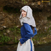 The "Moonlit Maiden" Veil is inspired by the half-moon veils worn by women in the 15th century, reflecting the blend of elegance, modesty, and practicality that characterized medieval headwear. Crafted from 100% Baltic linen at 150 GSM (grams per square meter, indicating fabric weight), this veil provides a soft, breathable layer that drapes gracefully over the shoulders, framing the face with subtle refinement. Perfect for historical reenactments, LARP, and SCA events, this veil is a versatile accessory that completes a variety of medieval and early Renaissance ensembles.