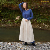 Historically, aprons like these were worn over dresses or shifts to protect clothing during household tasks and daily labor. The Harvest Maiden apron captures this essential function, providing both coverage and modesty, which were valued in medieval peasant attire. The cotton-flax blend offers breathability and durability, making it comfortable for long events and suitable for active use.