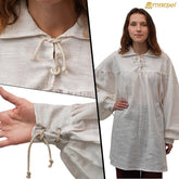 Includes adjustable ties at the wrists and neck, letting you loosen or tighten the fit for comfort or style. The ties also add a traditional touch reminiscent of garments worn by bards, poets, and adventurers.